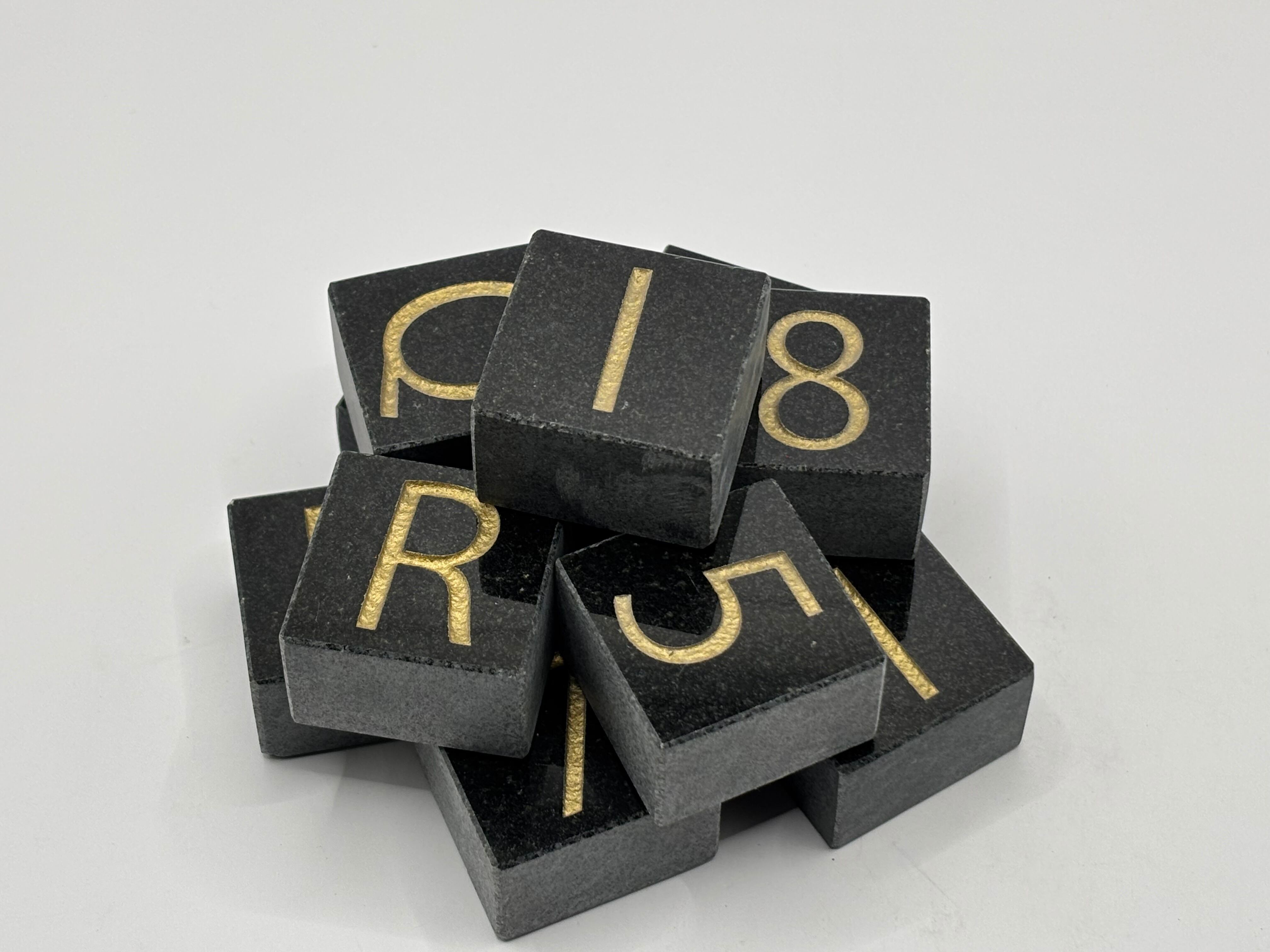 天然石を使用しているため、各文字や石には微細な色合いや模様の違いがあります。この自然の個性こそが一文字ブロックの魅力であり、唯一無二の存在感を放ちますので、その点をご理解の上でご注文いただければ幸いです。
