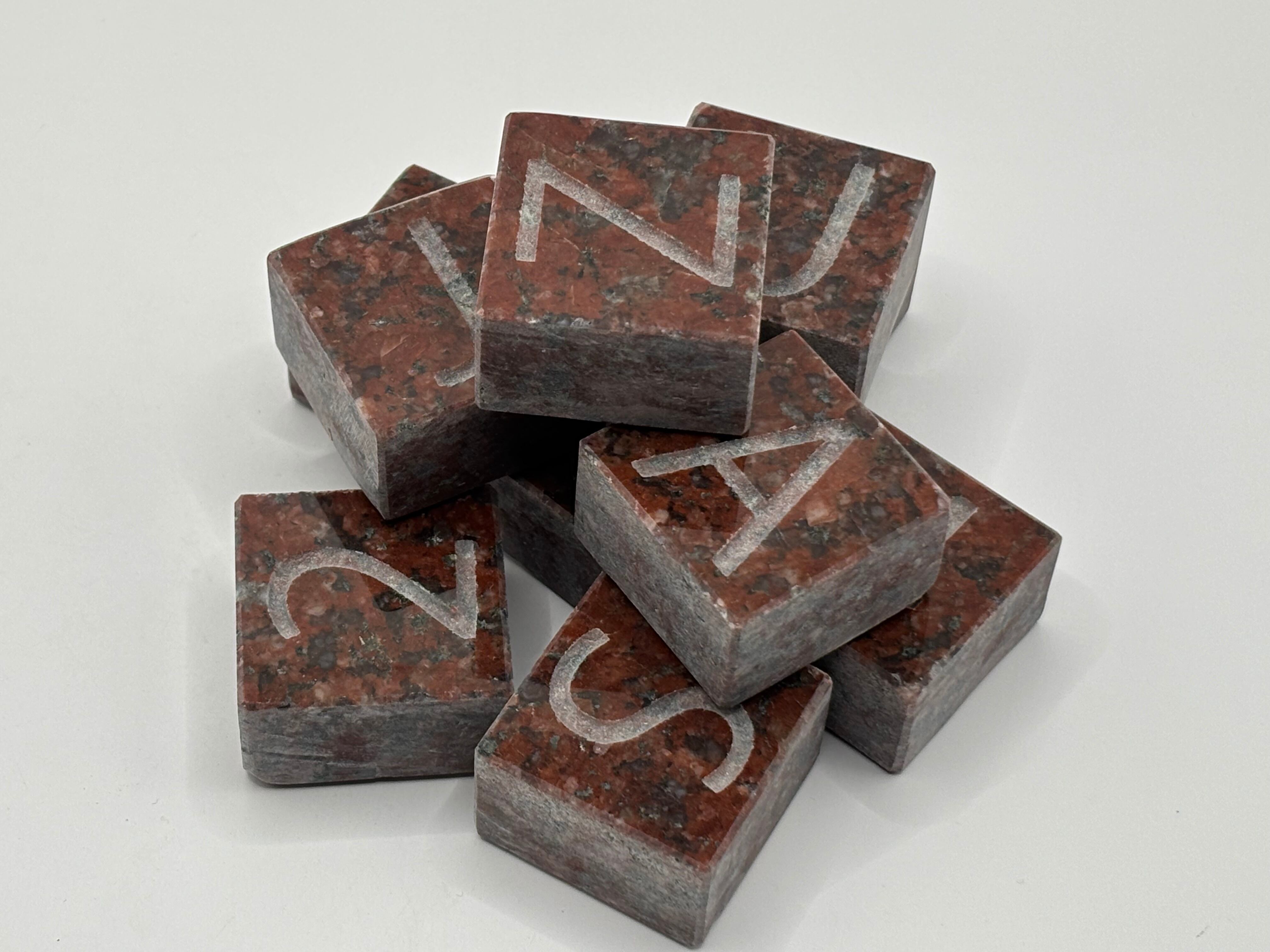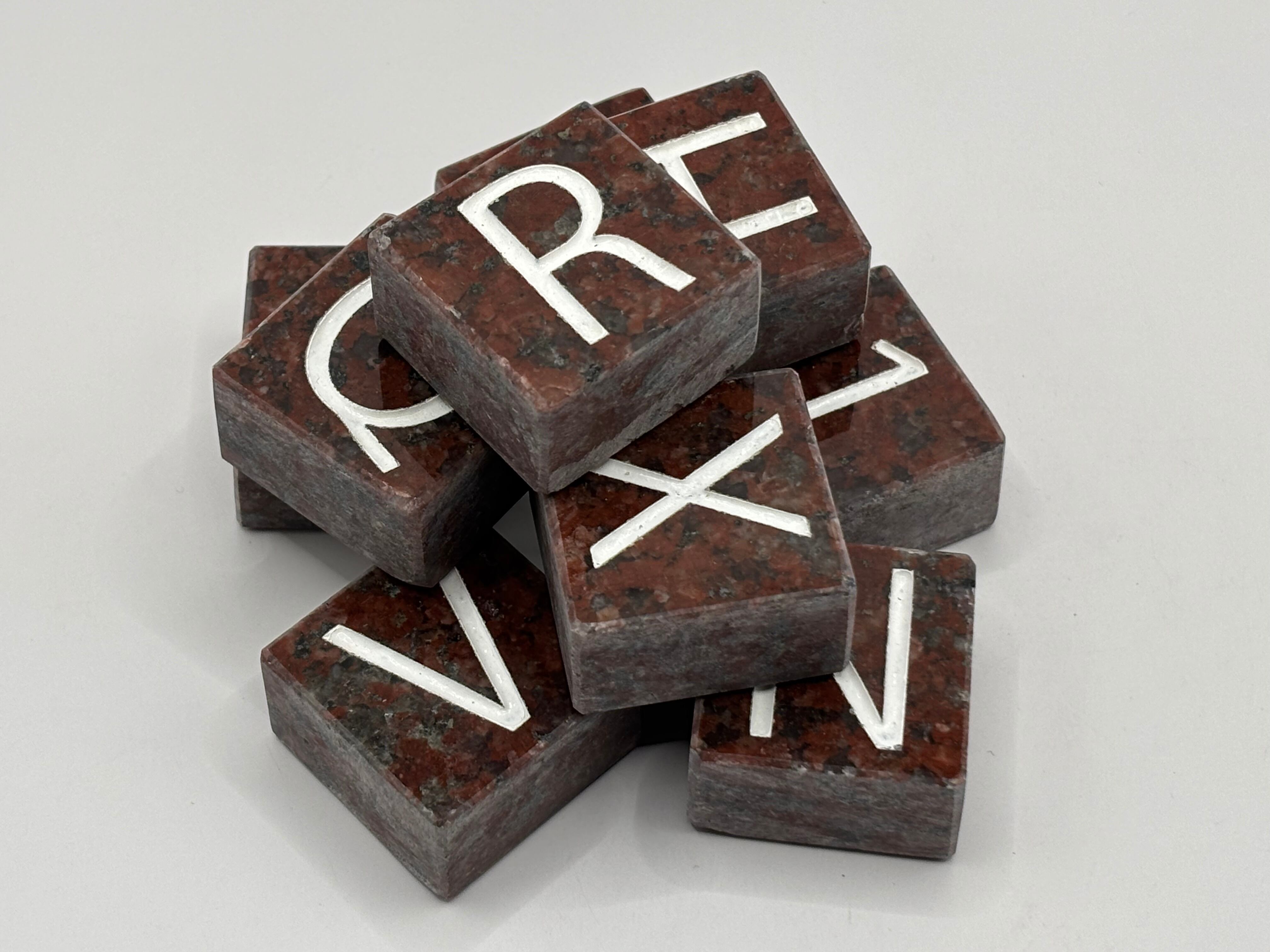 天然石を使用しているため、各文字や石には微細な色合いや模様の違いがあります。この自然の個性こそが一文字ブロックの魅力であり、唯一無二の存在感を放ちますので、その点をご理解の上でご注文いただければ幸いです。